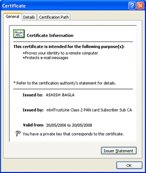 • Certificate details will be displayed as shown below. Please acquaint yourself with the various details available on the form shown below.